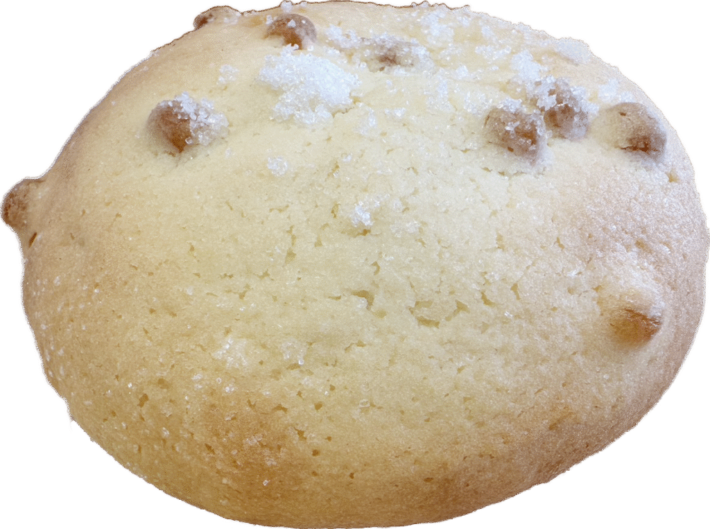 まんなかに溶けたメープルがしっとりとしみ込んでいます。お口いっぱいにメープルが香る、ぜいたくなメロンパンです。